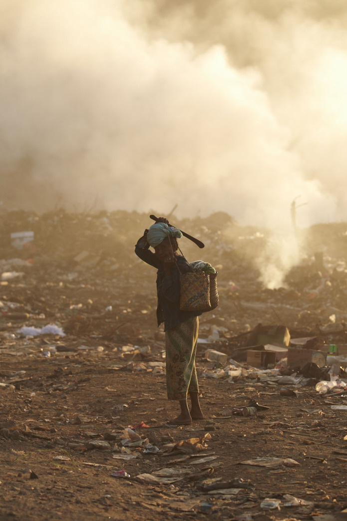 Sometimes the parents have jobs within these tribes as collectors. Other times? The parents stay inside their trash shanties all day, drunk. Inside their homes fashioned from plastic beams and vinyl beer adverts, drawing stagnant water from a sulfur-stinking pool. In those cases, and in the case of abandonment, it’s the children as young as four who trudge forth with two-foot-long metal hooks–instruments better suited for medieval torture than trash collection. They do not go to school. They do not see anyone outside their dump community. They do not know of a way out; they cannot comprehend another life. Their feet take them nowhere, and they are connected deeply to their lot in life, physically and psychologically. More than you and I, they are connected to what this earth has become.